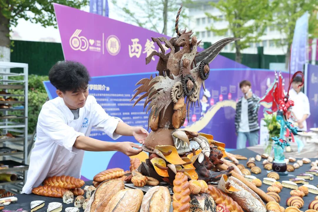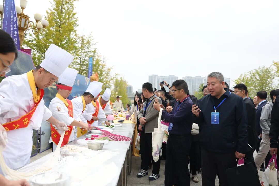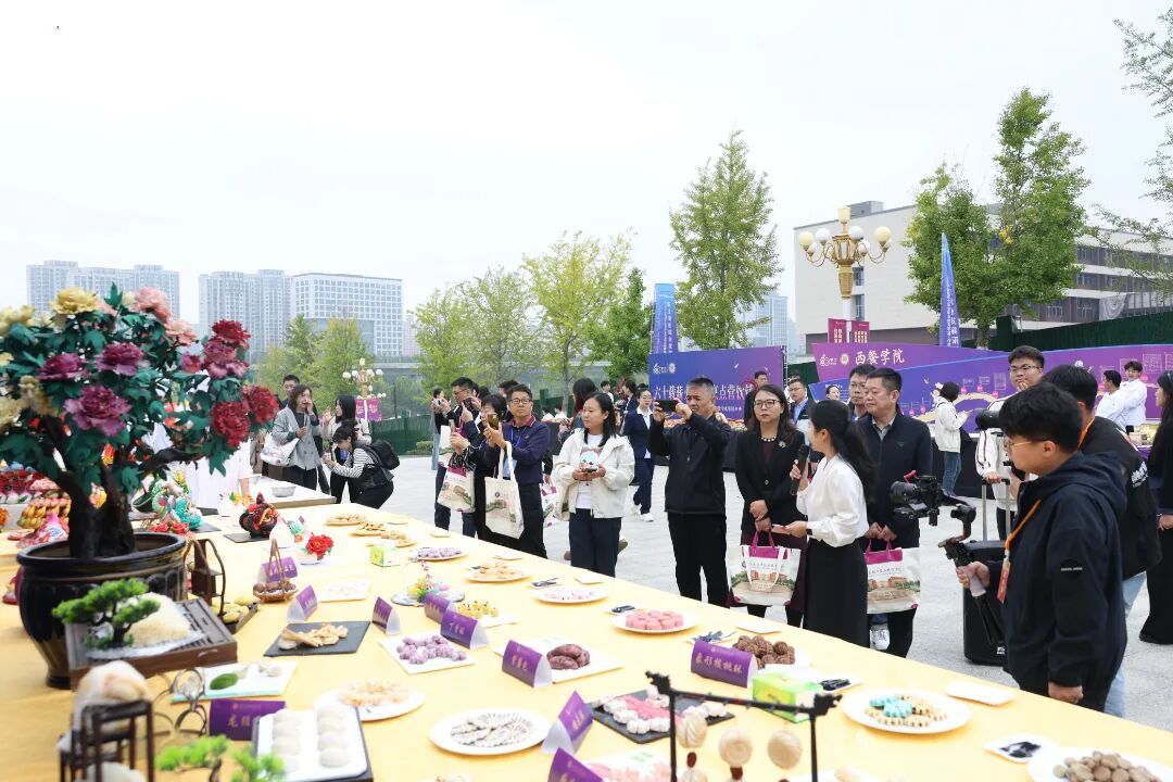 中餐学院展台前,鲁菜大师现场演示气球切丝、蓑衣黄瓜、果蔬雕刻等拿手绝活儿;西餐学院的艺术面包色香味俱全,令人垂涎欲滴;文化与创意学院的贝壳风铃、花艺装置、非遗绒花等文创作品琳琅满目……学校成果展示区以“匠心筑梦?就业赋能”为主线,九大专业板块沿参观动线依次排开,吸引与会嘉宾驻足流连。