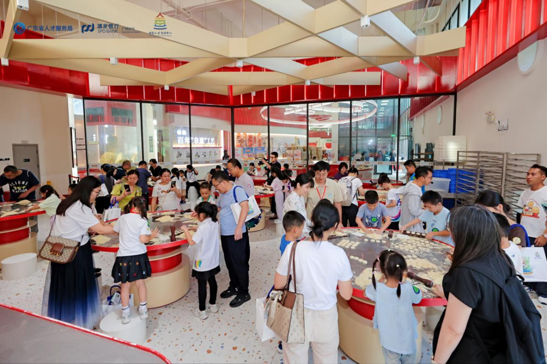 在咀香园饼文化博览馆内,省级非遗技艺的百年传承通过老物件陈列、手工体验等形式生动呈现,让人才家庭通过参观现代化生产手段,了解到科技赋予“传统”的新式生命力。在体验环节,人才家长与孩子共同揉搓饼胚、压模成型,在一片欢声笑语中,领悟“舌尖上的非遗”背后精益求精的工匠精神。