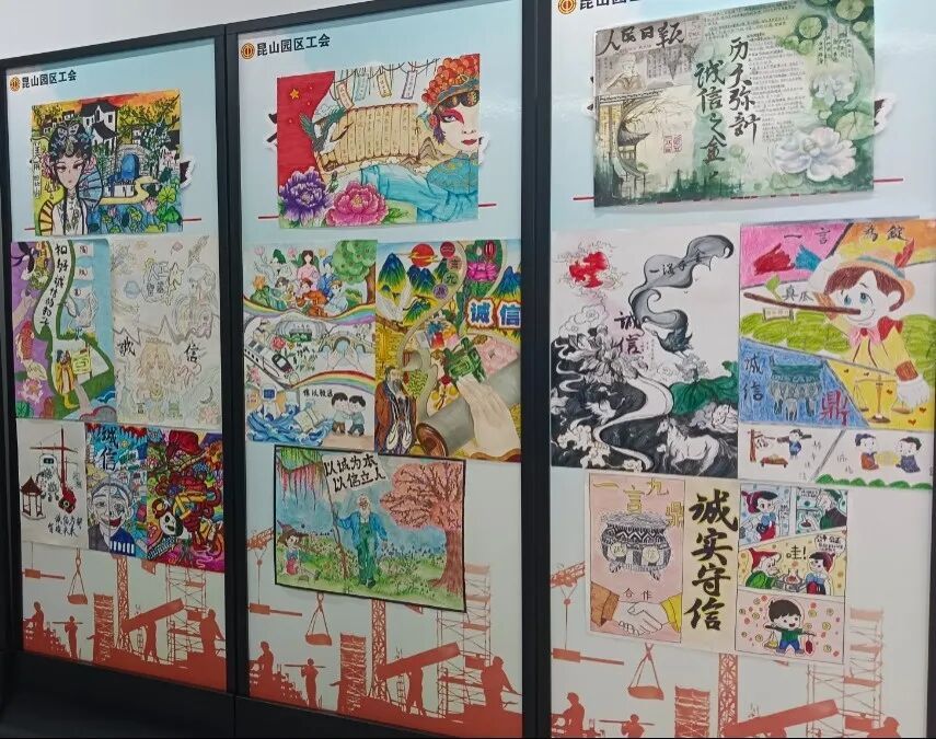 昆山高新区行政审批局联合昆山市信用办和富士康,共同举办了“以诚为本·以信立人”主题诚信宣传系列活动,在富士康园区打造“诚信之路”主题墙绘互动展区,特别设置了“征文+绘画”竞赛及亲子创作环节,共征集到征文作品59篇、绘画作品61幅,以艺术为媒,激发企业职工诚信共鸣,并通过企业守信激励与失信惩戒案例分享会,生动诠释“诚信兴商、失信难行”的市场法则。