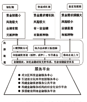 第三,加快金融服务平台建设。一是成立杭州高新区科技金融服务中心,聚集了商业银行、风险投资、证券机构、担保公司、信托基金、金融中介等金融服务机构,以“创新金融服务,促进产业发展”为目标,发挥“银行融资、创业投资、上市服务”核心功能,为科技型中小企业搭建起一整套科技金融服务体系——从项目孵化期银行融资、初创期的天使投资到成长期的风险投资,直至上市前后得到全生命周期的可持续科技金融服务。