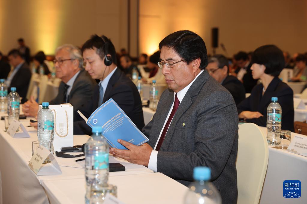 11月8日,在秘鲁首都利马,嘉宾翻阅智库报告。新华社记者 李梦馨 摄