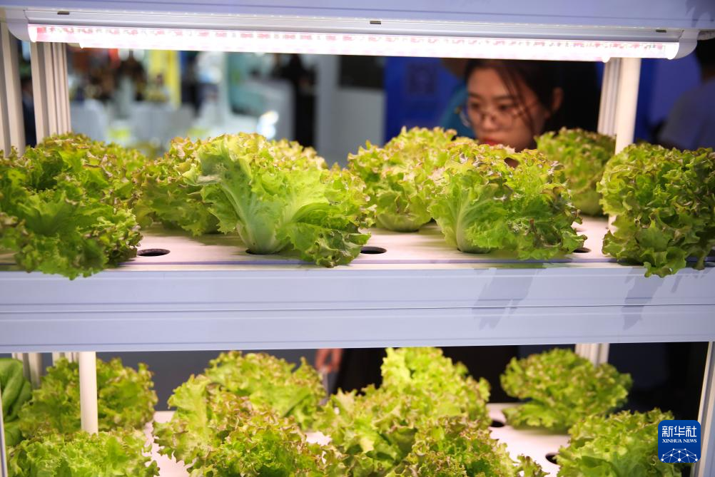 9月13日,观众在一轻科技展台观看“智能家庭种植机”。