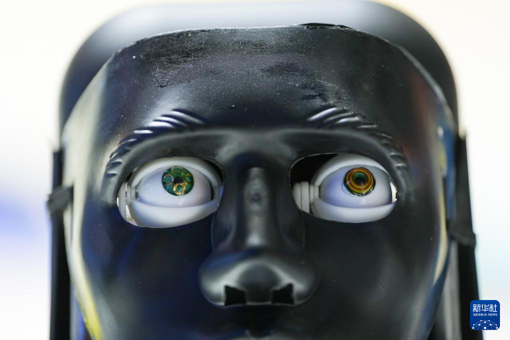 9月13日,在服贸会首钢园区,参观者观看展出的一款戏曲人形仿生机器人。该戏曲人形仿生机器人可实现智能抓取、自主行走、自动避障、自动平衡等功能,模拟戏曲演员的动作和唱腔,进行戏曲表演,为观众带来全新的观赏体验。