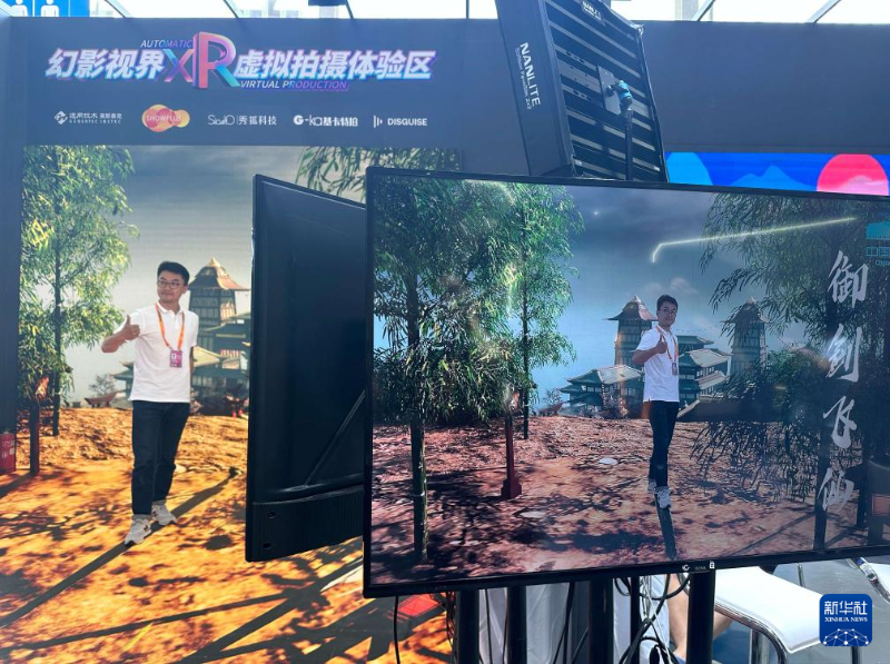 图为参观者在服贸会文旅服务专题参与全自动XR虚拟拍摄沉浸体验项目。新华社记者 杨淑君 摄