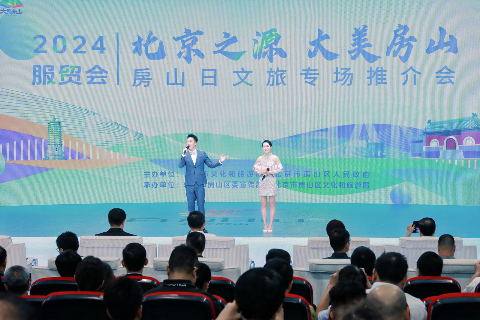 9月15日,在2024年中国国际服务贸易交易会(服贸会)3A展馆,一场以“北京之源 大美房山”为主题的文旅专场推介会在首钢国际会展中心举行。