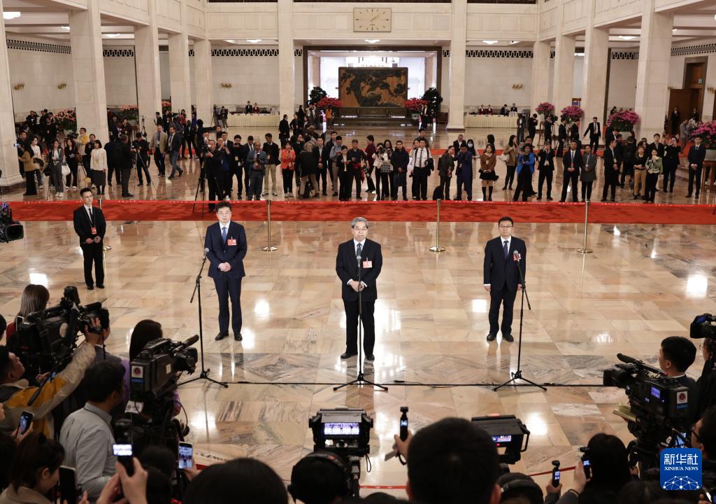 3月4日,全国政协十四届三次会议首场“委员通道”集体采访活动在北京人民大会堂举行。