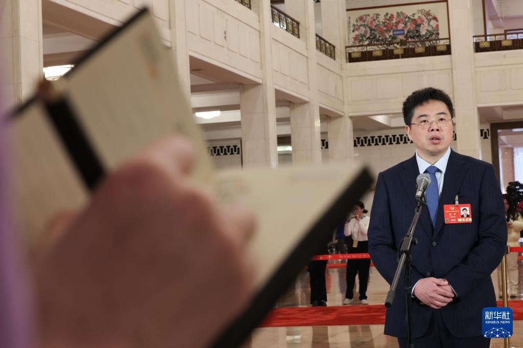 3月4日,全国政协十四届三次会议首场“委员通道”集体采访活动在北京人民大会堂举行。这是全国政协委员黄绵松接受媒体采访。
