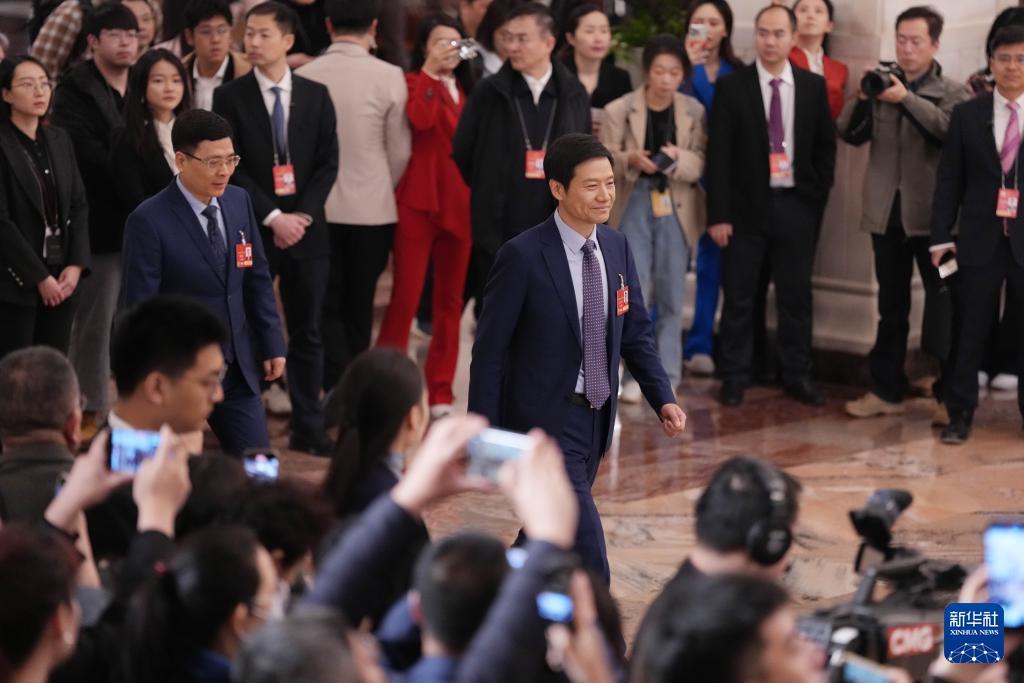 3月5日,第十四届全国人民代表大会第三次会议首场“代表通道”集中采访活动在北京人民大会堂举行。这是全国人大代表雷军接受媒体采访。
