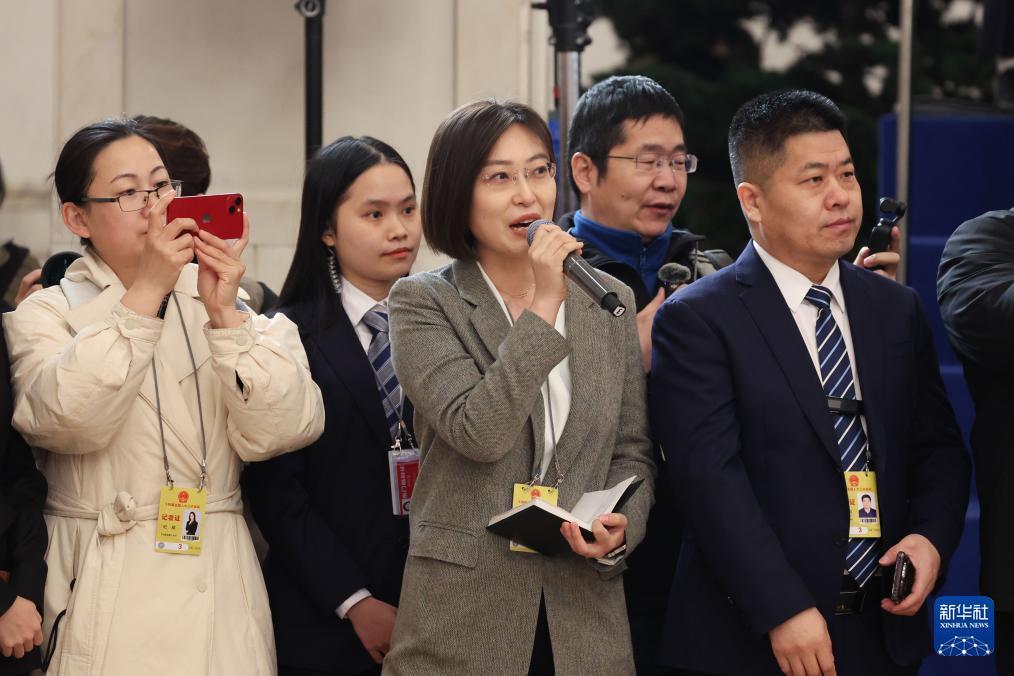 3月5日,第十四届全国人民代表大会第三次会议首场“代表通道”集中采访活动在北京人民大会堂举行。这是记者在提问。