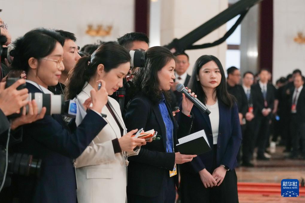 3月8日,第十四届全国人民代表大会第三次会议第二场“代表通道”集中采访活动在北京人民大会堂举行。这是新华社记者在提问。