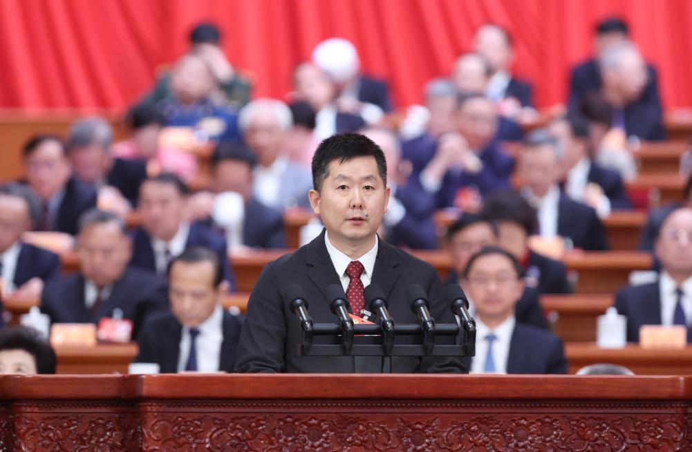 3月9日,全国政协十四届三次会议在北京人民大会堂举行第三次全体会议。这是朴世龙委员作《加快发展绿色低碳产业 推动发展方式绿色转型》的发言。