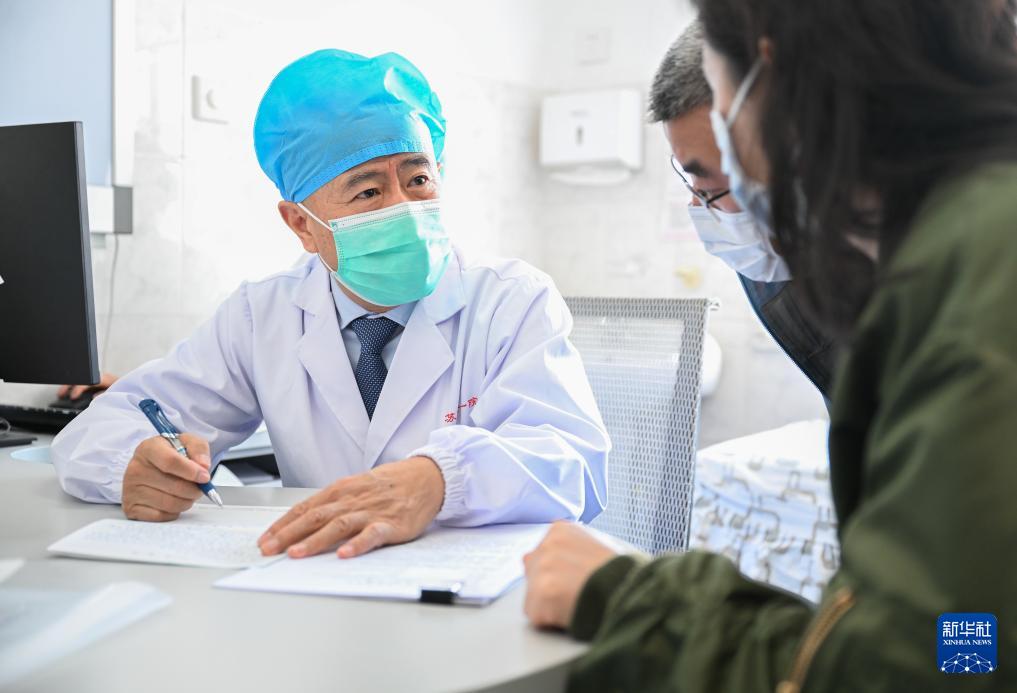 在苏州大学附属第一医院血液科,全国政协委员、苏州大学附属第一医院血液科主任吴德沛和患者家属交谈(2025年2月18日摄)。