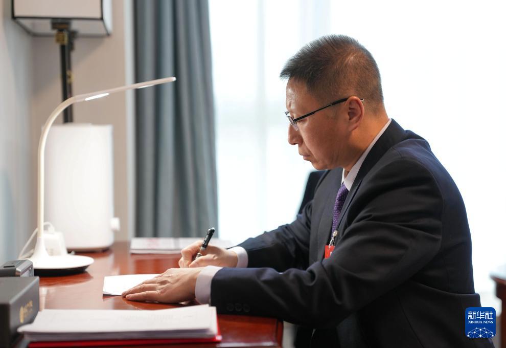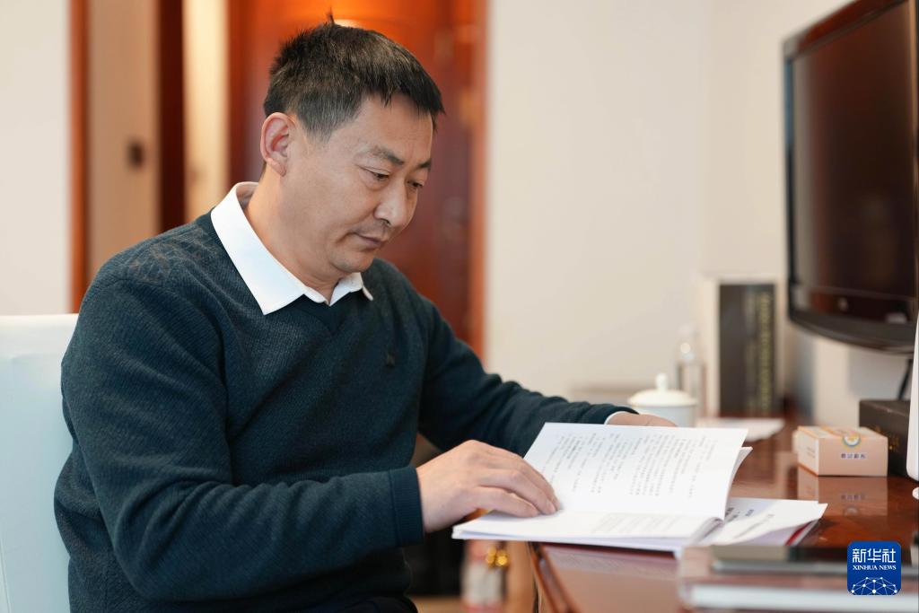 3月3日,全国人大代表、中石化第四建设有限公司工匠学院焊接教练张振连在北京的驻地阅读文件。