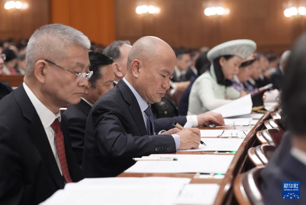 3月5日,全国人大代表、中石化第四建设有限公司工匠学院焊接教练张振连(右二)在北京人民大会堂出席十四届全国人大三次会议开幕会。