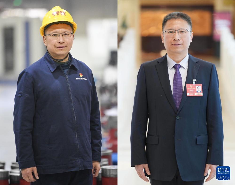拼版照片:左图为在重庆红江机械有限责任公司加工车间拍摄的全国人大代表、重庆红江机械有限责任公司加工中心特级技师傅国涛(新华社记者王全超2025年2月11日摄);右图为在十四届全国人大三次会议重庆代表团驻地拍摄的傅国涛(新华社记者邢广利2025年3月3日摄)。