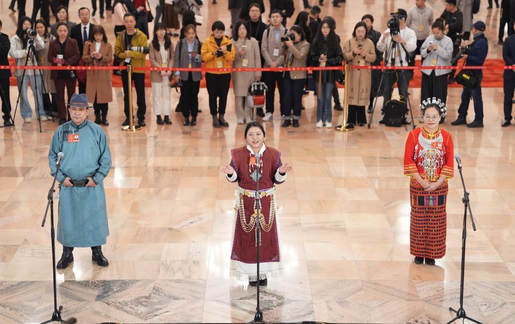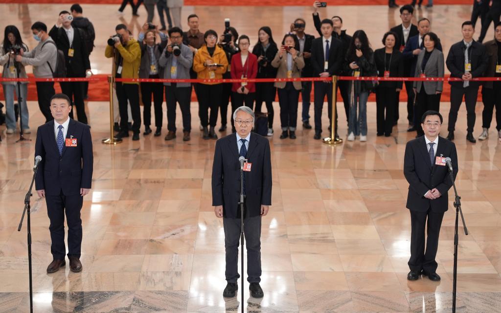 3月10日,全国政协十四届三次会议第三场“委员通道”集体采访活动在北京人民大会堂举行。