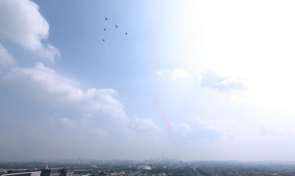 这是歼击机梯队接受检阅。新华社记者 夏一方 摄