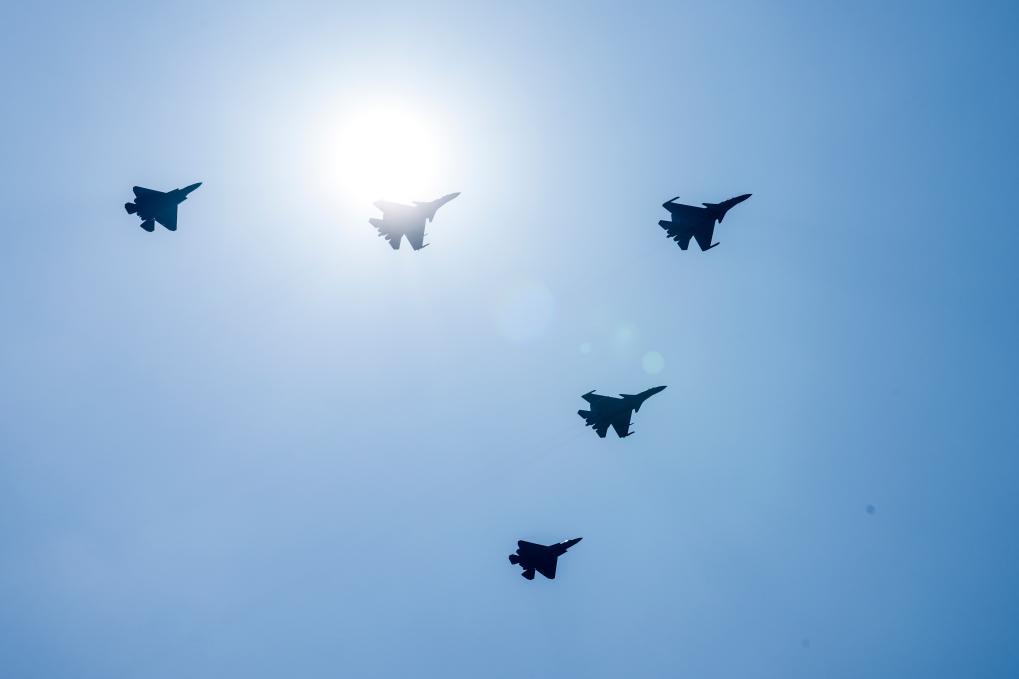 9月3日,纪念中国人民抗日战争暨世界反法西斯战争胜利80周年大会在北京隆重举行。这是舰载机梯队接受检阅。新华社记者 郑焕松 摄