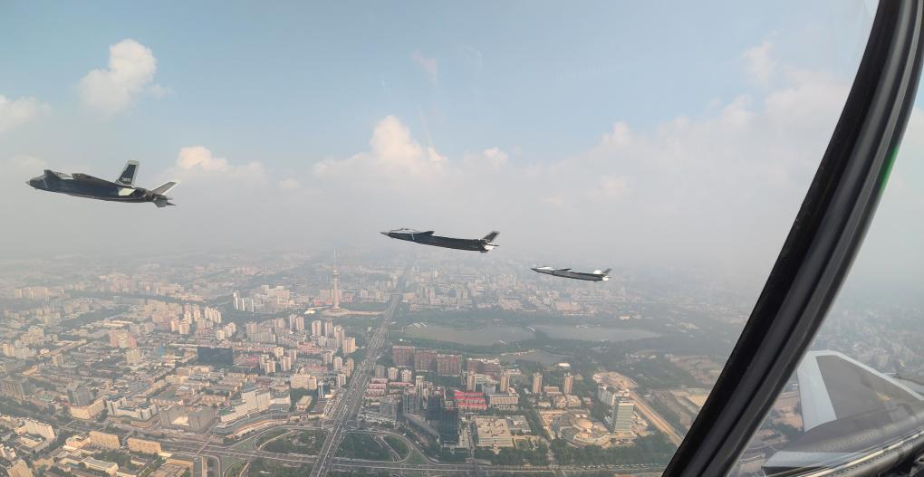 9月3日,纪念中国人民抗日战争暨世界反法西斯战争胜利80周年大会在北京隆重举行。这是舰载机梯队接受检阅。新华社记者 郑焕松 摄